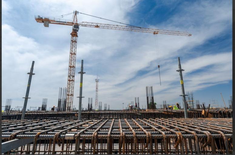 Сейчас строится второй этаж трехэтажного терминала. На кадрах также можно увидеть фундамент для 8 переходных галерей, от которых будут отходить 10 телетрапов.