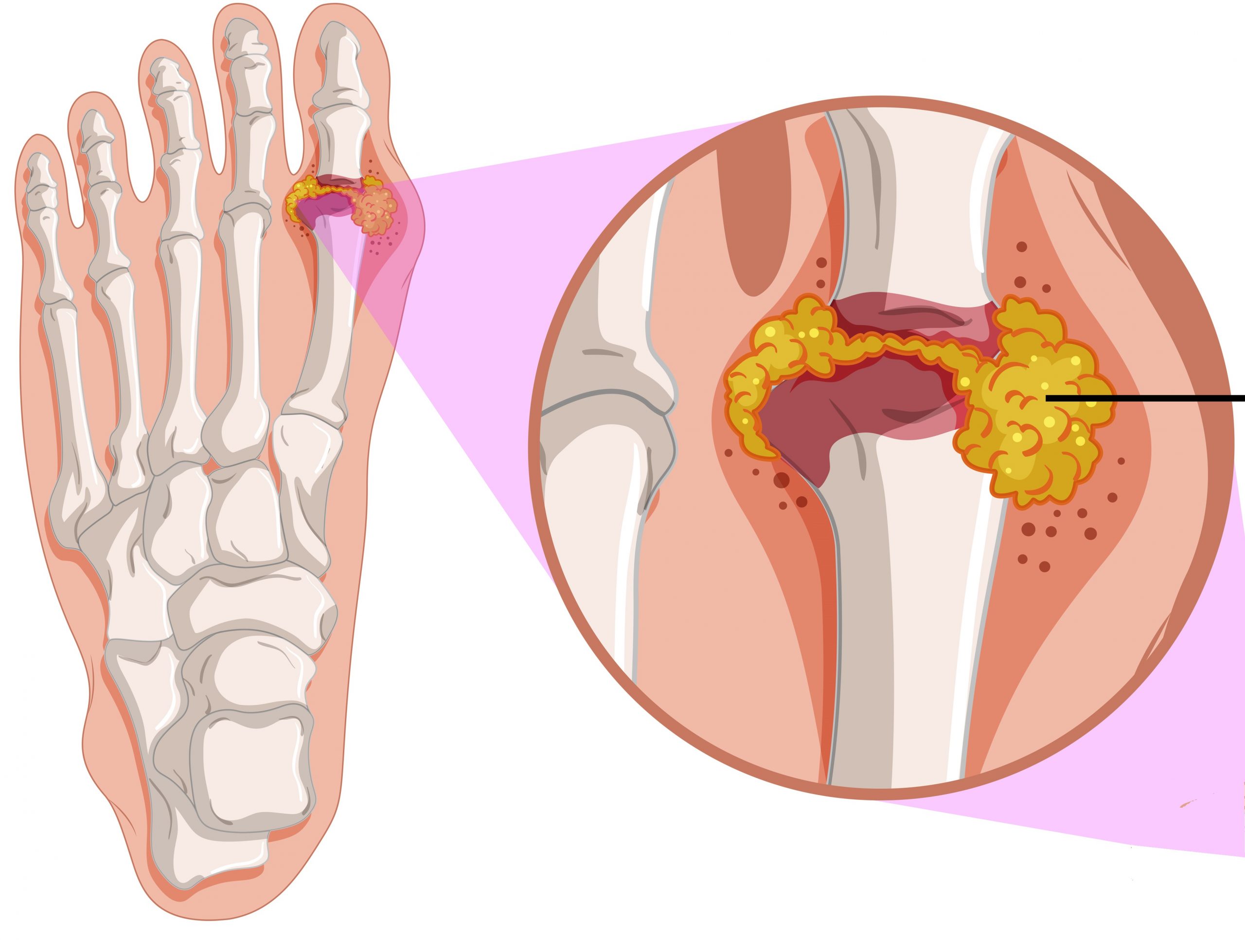 Подагра — это разновидность артрита, возникающая при аномально высоком уровне мочевой кислоты в крови. Избыток мочевой кислоты накапливается в суставах, вызывая воспаление, что приводит к сильной боли и отеку.