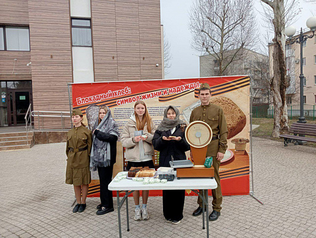 Волонтёры раздавали информационные материалы о блокаде Ленинграда и мужестве его жителей, и каждый желающий мог получить символический кусочек «блокадного хлеба» весом 125 граммов.
