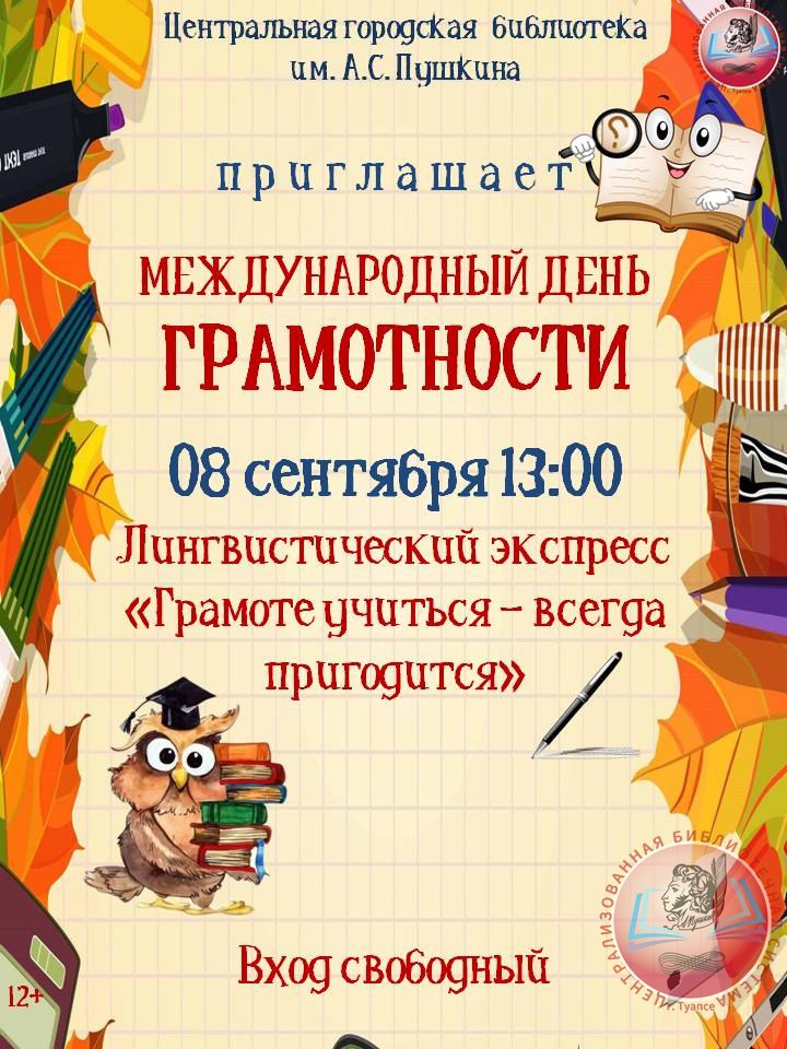 Друзья! Мы рады пригласить вас принять участие в увлекательном мероприятии, посвященном Дню грамотности. Это событие пройдет в нашем городе и станет отличной возможностью для всех желающих узнать больше о важности грамотности в современном обществе.
